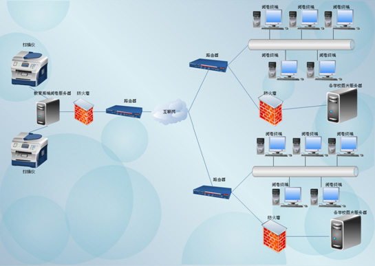 南昊網(wǎng)上閱卷互聯(lián)網(wǎng)應用方案拓撲圖如下: